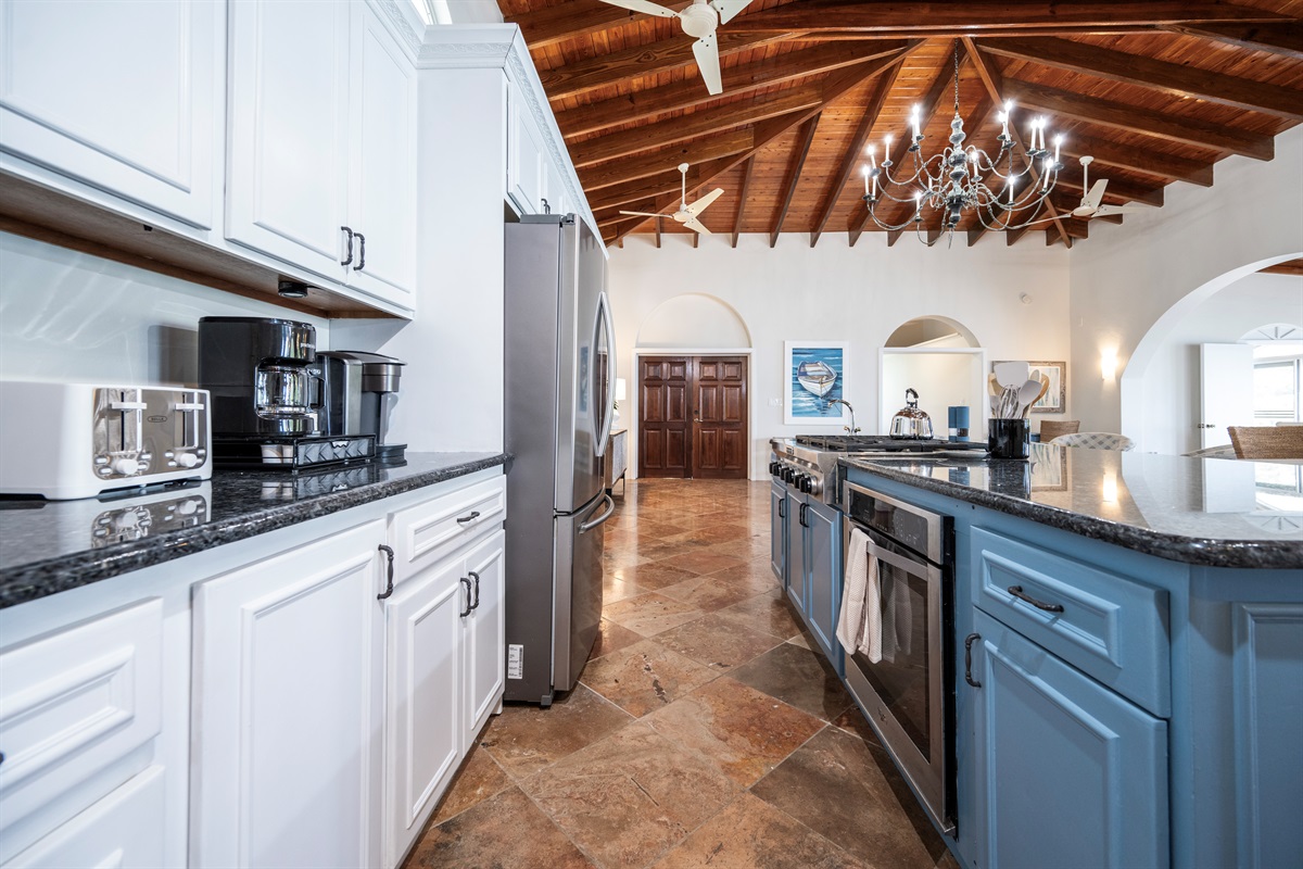 • Two Kitchens – The main kitchen with a Keurig + drip coffee maker, and a second downstairs kitchen for poolside convenience.
