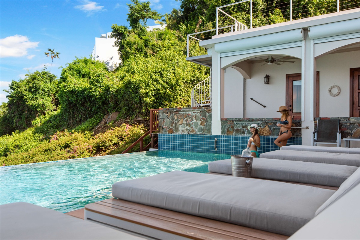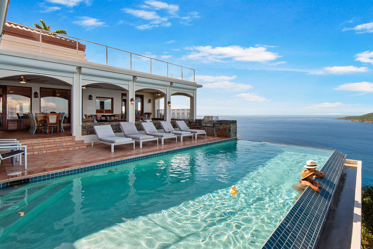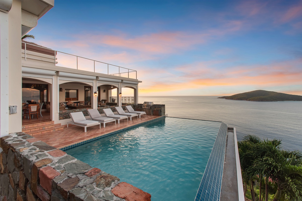 A tranquil and spacious newly decorated 4 bedroom / 6 bath oasis located in St. Thomas. Stardust Villa has luxurious bedrooms, baths, dining areas and outdoor spaces. This villa is meant for entertaining! Escape to paradise with your infinity pool overlooking the Caribbean Sea and neighboring island chains at Stardust Villa.