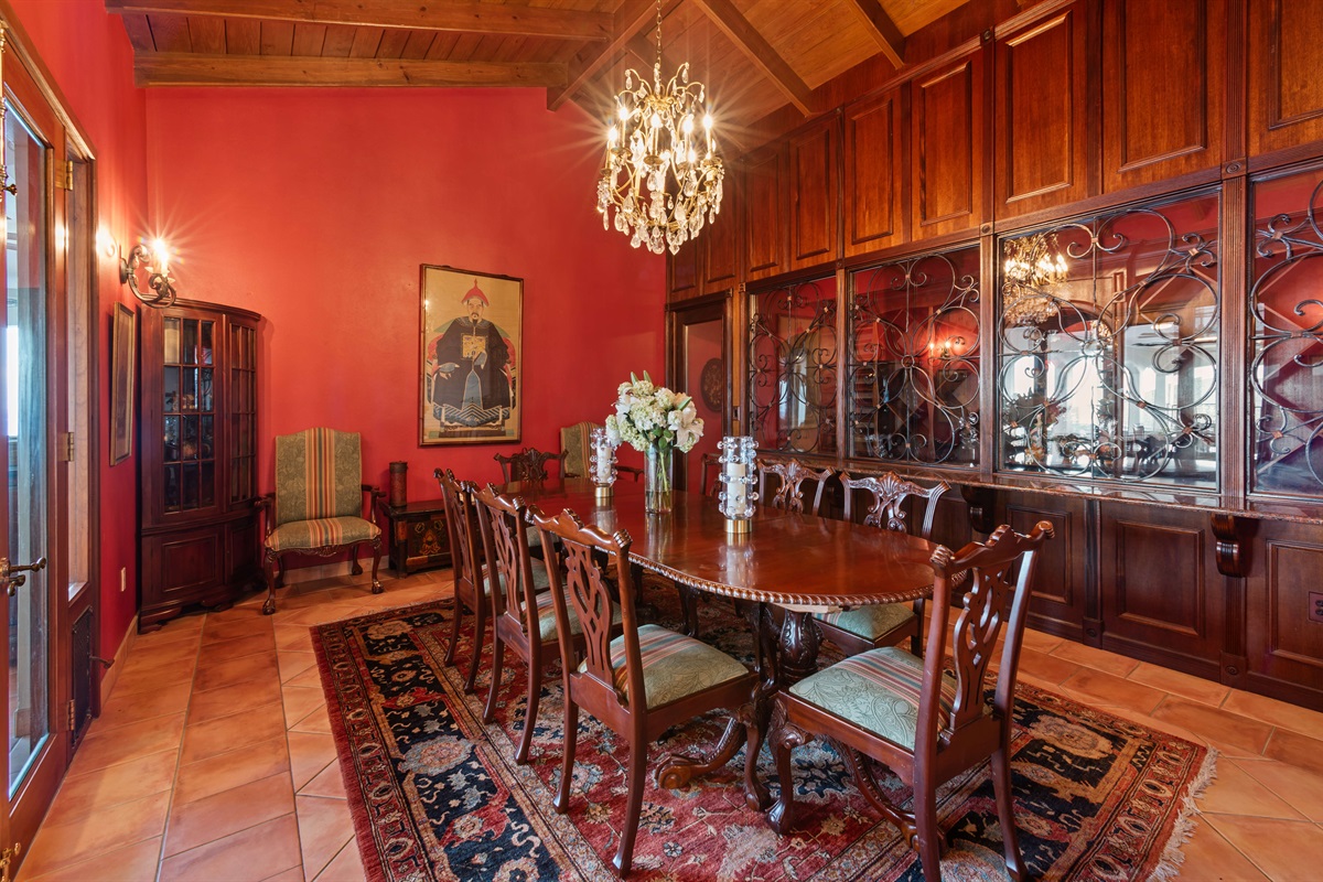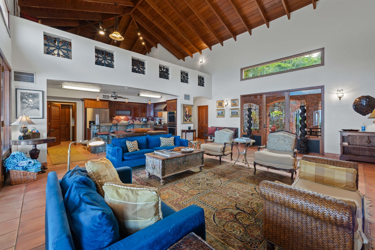 • Richly decorated, comfortable, communal living area, kitchen, and dining room.