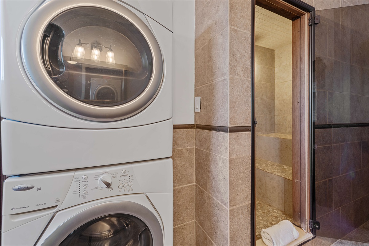 • The final bedroom is located in the downstairs apartment that has another full kitchen and living room with a queen sleeper sofa. There is an ensuite bathroom with a walk in shower and laundry.