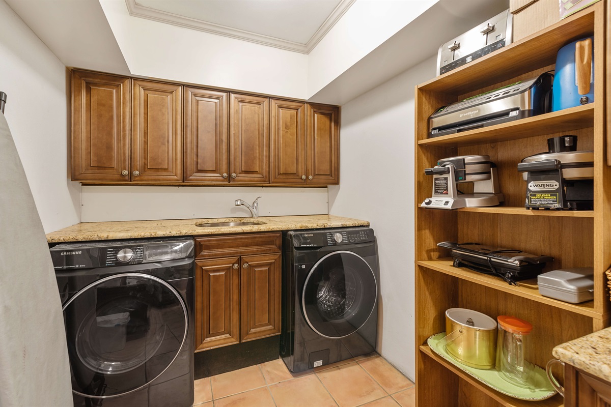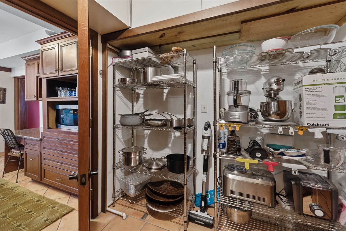 • Laundry room is located in a room off the kitchen and is also storage for almost any kitchen appliance you could imagine.