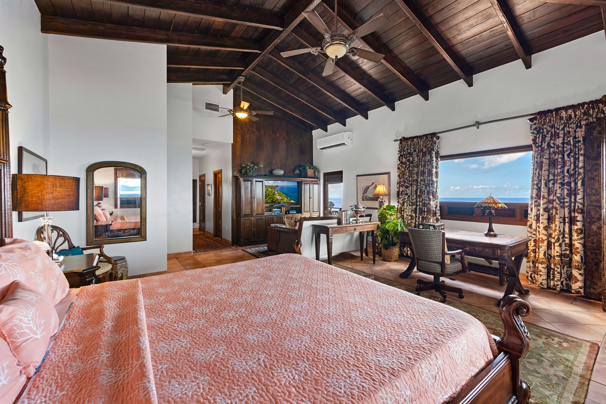 • There are four bedrooms along with 6 full bathrooms. Three bedrooms are on the main floor, including the primary bedroom. The final bedroom is located down an outside flight of stairs in an apartment. This style set up is very common in the Caribbean. All the beds have king Casper cooling technology mattresses.